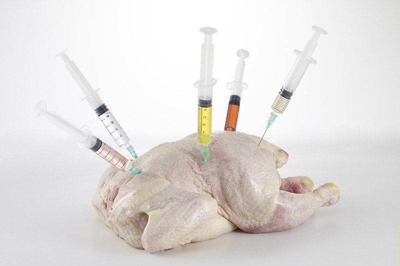 بسیاری از مرغداری‌های صنعتی برای جلوگیری از بیماری و افزایش رشد سریع‌تر حیوانات از آنتی‌بیوتیک‌ها استفاده می‌کنند. این روند نه تنها باعث باقی‌ماندن بقایای دارویی در محیط می‌شود، بلکه می‌تواند به ایجاد سویه‌های مقاوم در برابر آنتی‌بیوتیک منجر شود که برای سلامت انسان تهدیدی جدی است.
