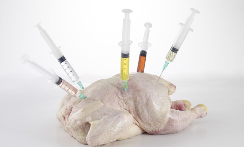 بسیاری از مرغداری‌های صنعتی برای جلوگیری از بیماری و افزایش رشد سریع‌تر حیوانات از آنتی‌بیوتیک‌ها استفاده می‌کنند. این روند نه تنها باعث باقی‌ماندن بقایای دارویی در محیط می‌شود، بلکه می‌تواند به ایجاد سویه‌های مقاوم در برابر آنتی‌بیوتیک منجر شود که برای سلامت انسان تهدیدی جدی است.